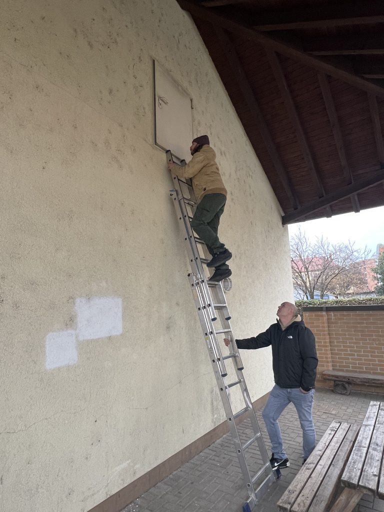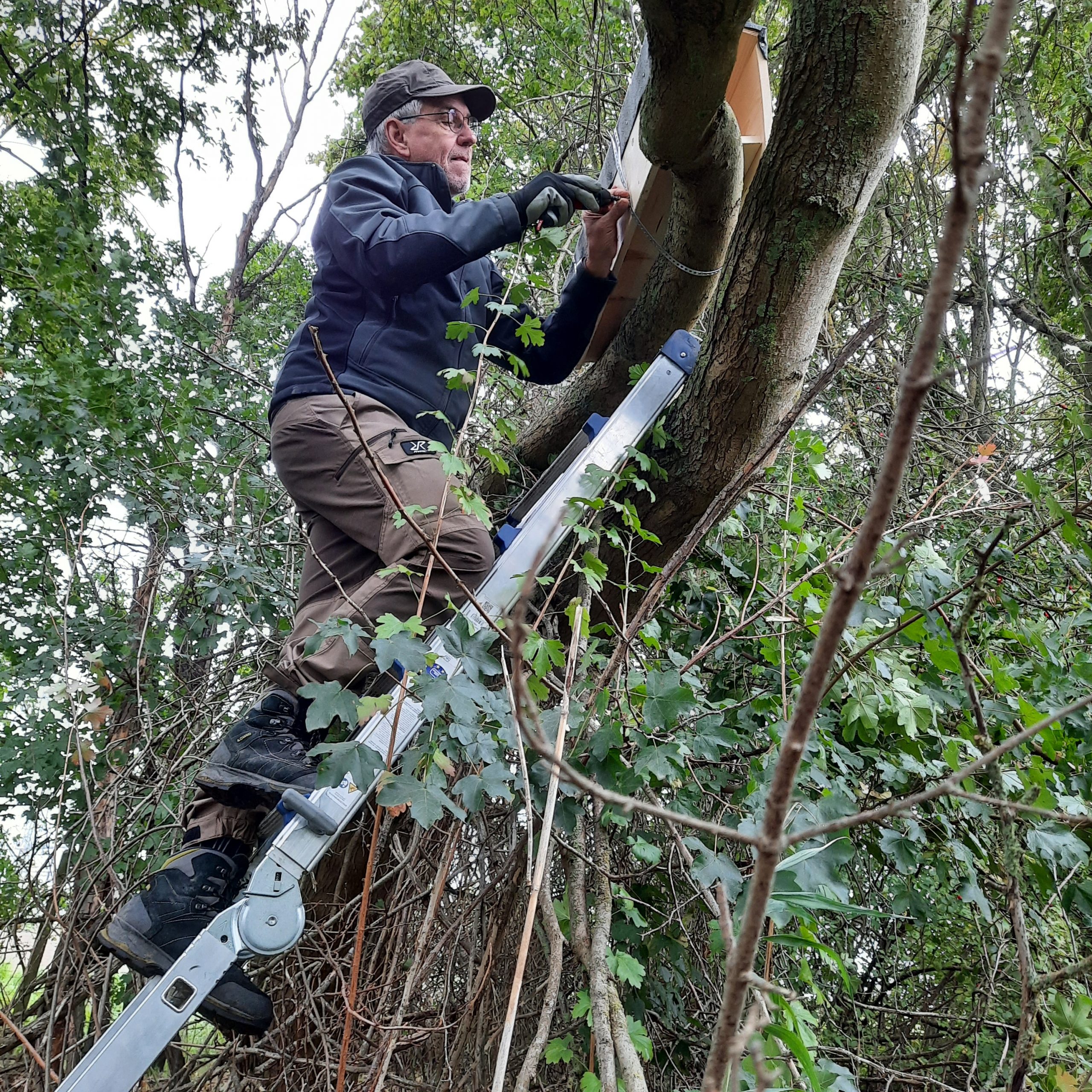 Erster Einsatz zur Reinigung und Reparatur der Steinkauzröhren.