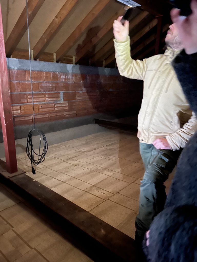 Einstieg zum DachstuhlAlles genau unter die Lupe nehmen 😉Erste mögliche Maßnahmen werden direkt vor Ort angesprochen und diskuttiert