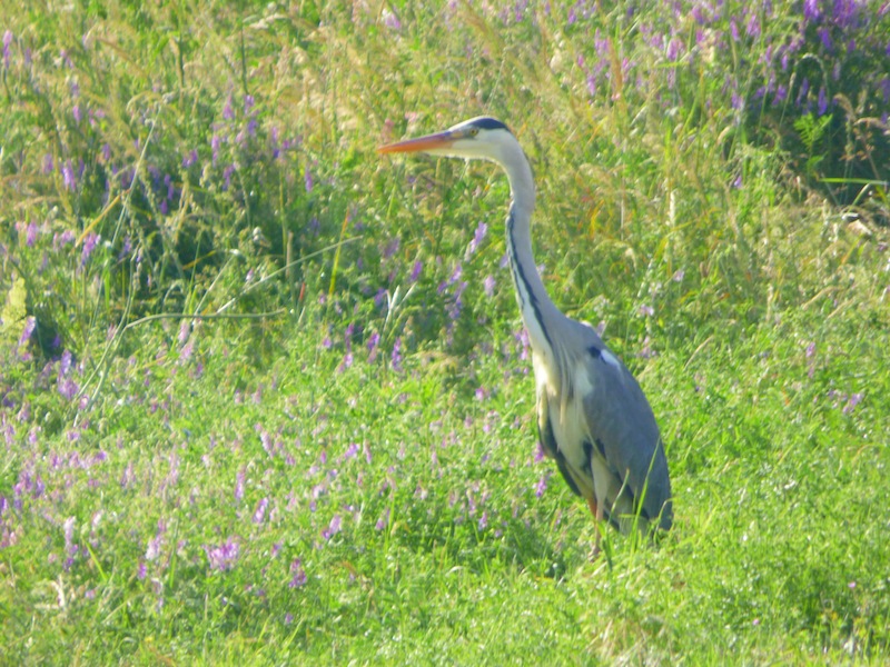 Am Pfingstmontag äußerte meine Frau den Wunsch, dass ich mit ihr durch den kleinen Wald gehe. Denn in diesem Jahr hätte sie, bedingt durch ihren Unfall, weder den Pirol noch die Nachtigall gehört. Als wir um 8.00 Uhr an unserer NABU- Garage starteten, hörten wir mehrere Schüsse. Wurde auf dem Strandbadgelände geschossen? Weiß hierüber jemand etwas? Auf unserem Spaziergang hörten wir: Pirol, Nachtigall, Singdrossel, Kuckuck, Zaunkönig, Mönchsgrasmücke. Die Dorngrasmücke ließ sich an der gewohnten Stelle einige Zeit lang gut beobachten, für ein Foto war sie aber zu lebhaft. Dagegen stand ein Graureiher still wie eine Statue. Auf unserem NABU-Grundstück sahen wir Gräser die uns an Flaschenbürsten erinnerten.Die Gräser sind uns unbekannt und so konnten wir sie leider nicht bestimmen.