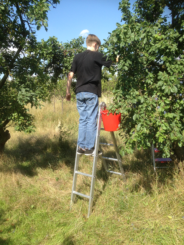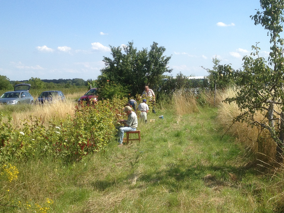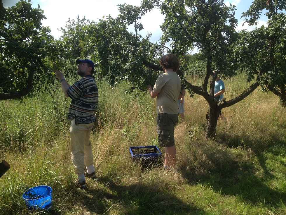 Am Mittwoch war es soweit: die erste Ernte auf der Pflaumenwiese wurde mit vereinten Kräften eingebracht.