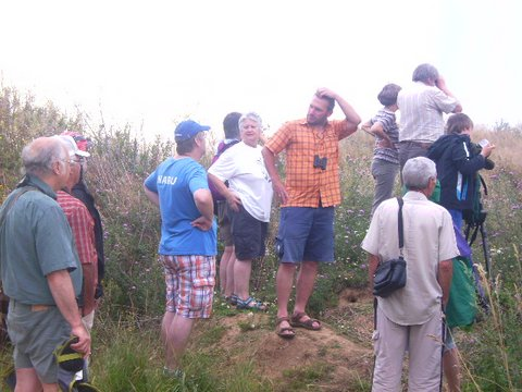 Feldlerche, Schafstelze, Bachstelze, Mauersegler waren unterwegs ebenso wie Rauch- und Mehlschwalben zu beobachten. Angekommen an den Gruben begrüßten uns dutzende von Bienenfressern und schnell war man in angeregten Gesprächen rund um diesen wunderschönen mediteranen Vogel, der in diesem Jahr mit über 30 Paaren in Gerolsheim brütet. Rund 1 1/2 Stunden nahmen sich die Exkursionsteilnehmer Zeit die Bienenfresser ebenso wie die in der Grube vorkommenden Uferschwalben zu beobachten. Auch das Wetter hatte diesmal ein Einsehen mit mir und es gab lediglich einen kurzen Schauer was mehr als verkraftbar war.