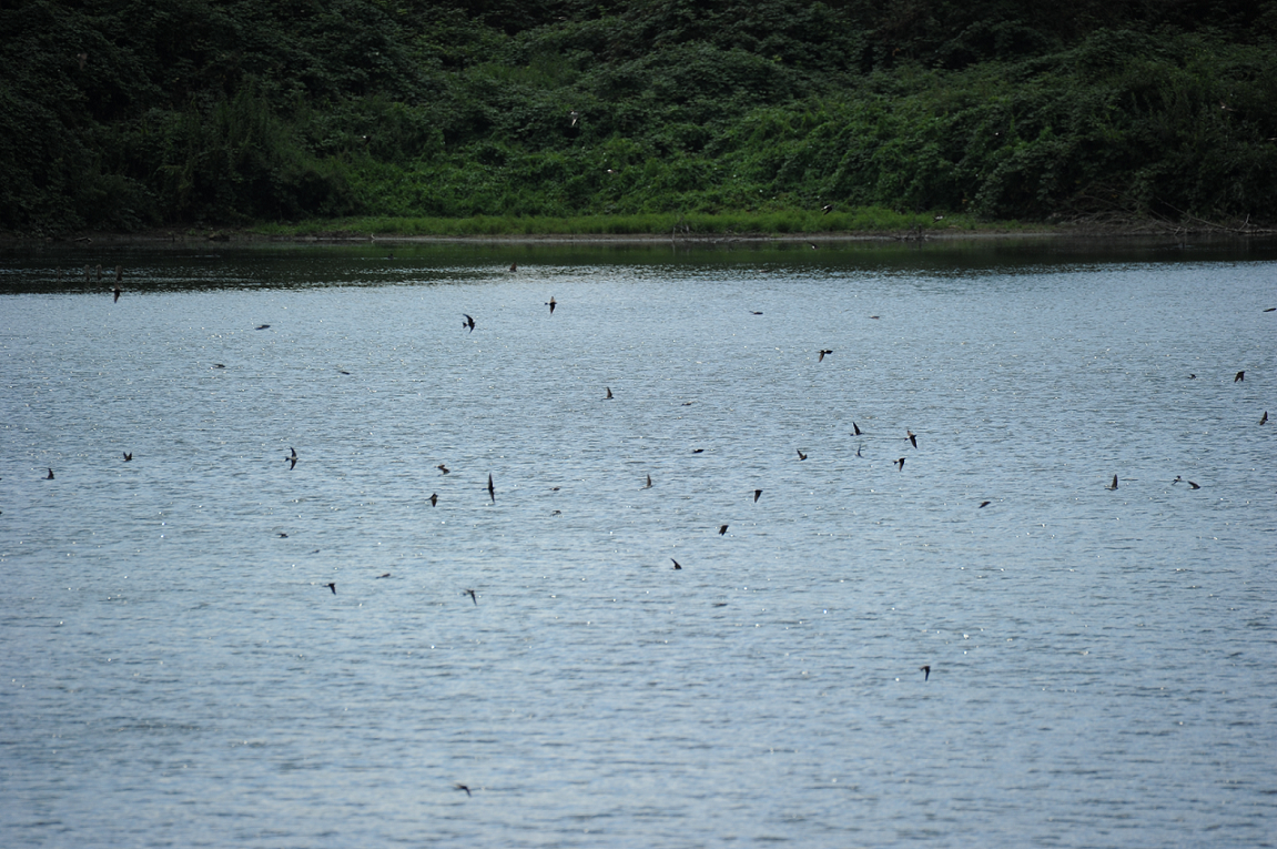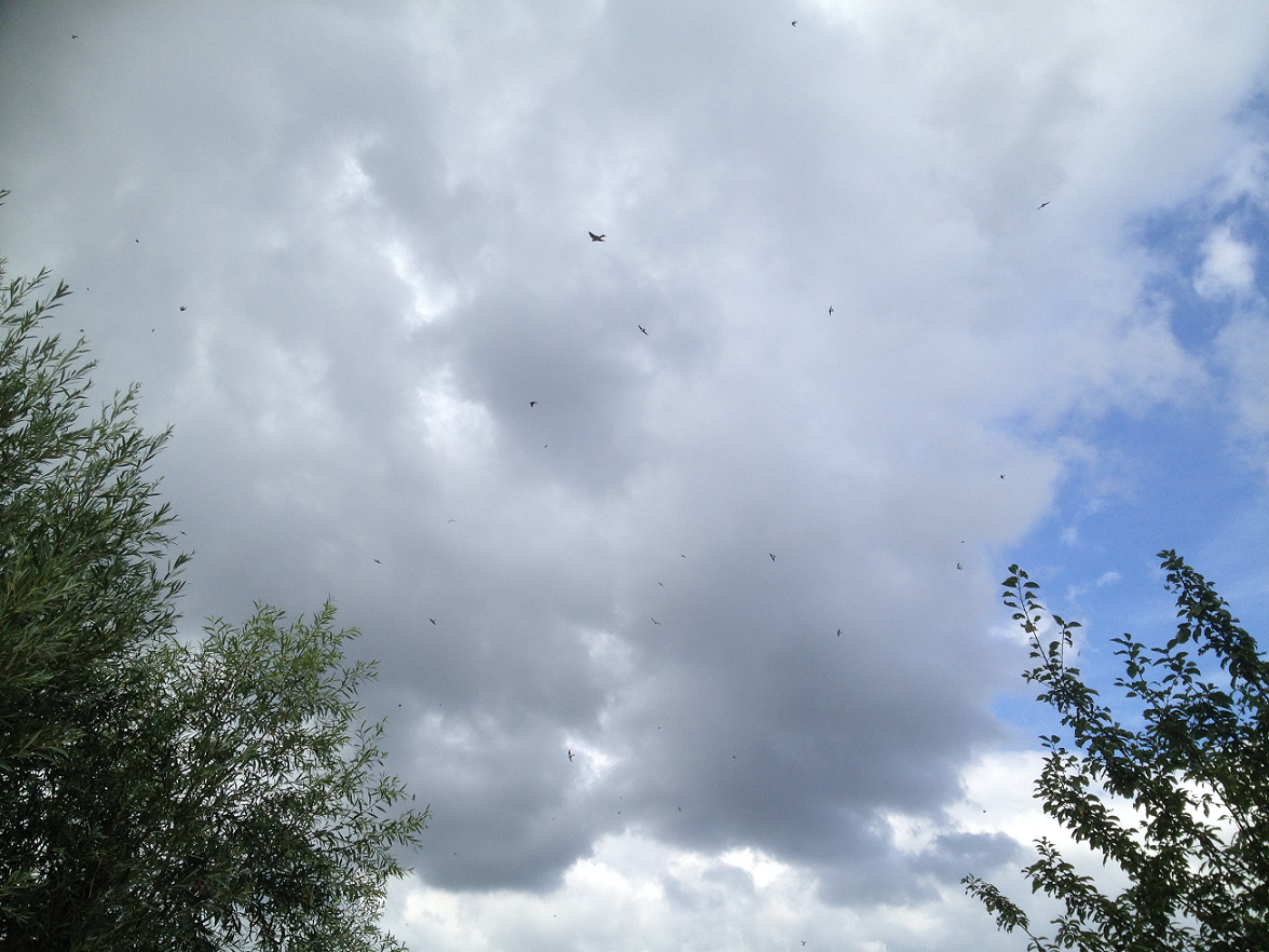 Fast am Ende der Exkursion kamen wir an einem weiteren Teich vorbei wo sich tausende !!! von Mehlschwalben über dem Wasser, an den Sträuchern und hoch in der Luft nochmals mit den vorhandenen Insekten den Bauch voll schlugen vor ihrer langen Reise nach Afrika. Schon gedanklich abgeschlossen mit der Veranstaltung streifte zum krönenden Abschluss dieses tollen Vormittags noch ein Wespenbussard über uns hinweg.