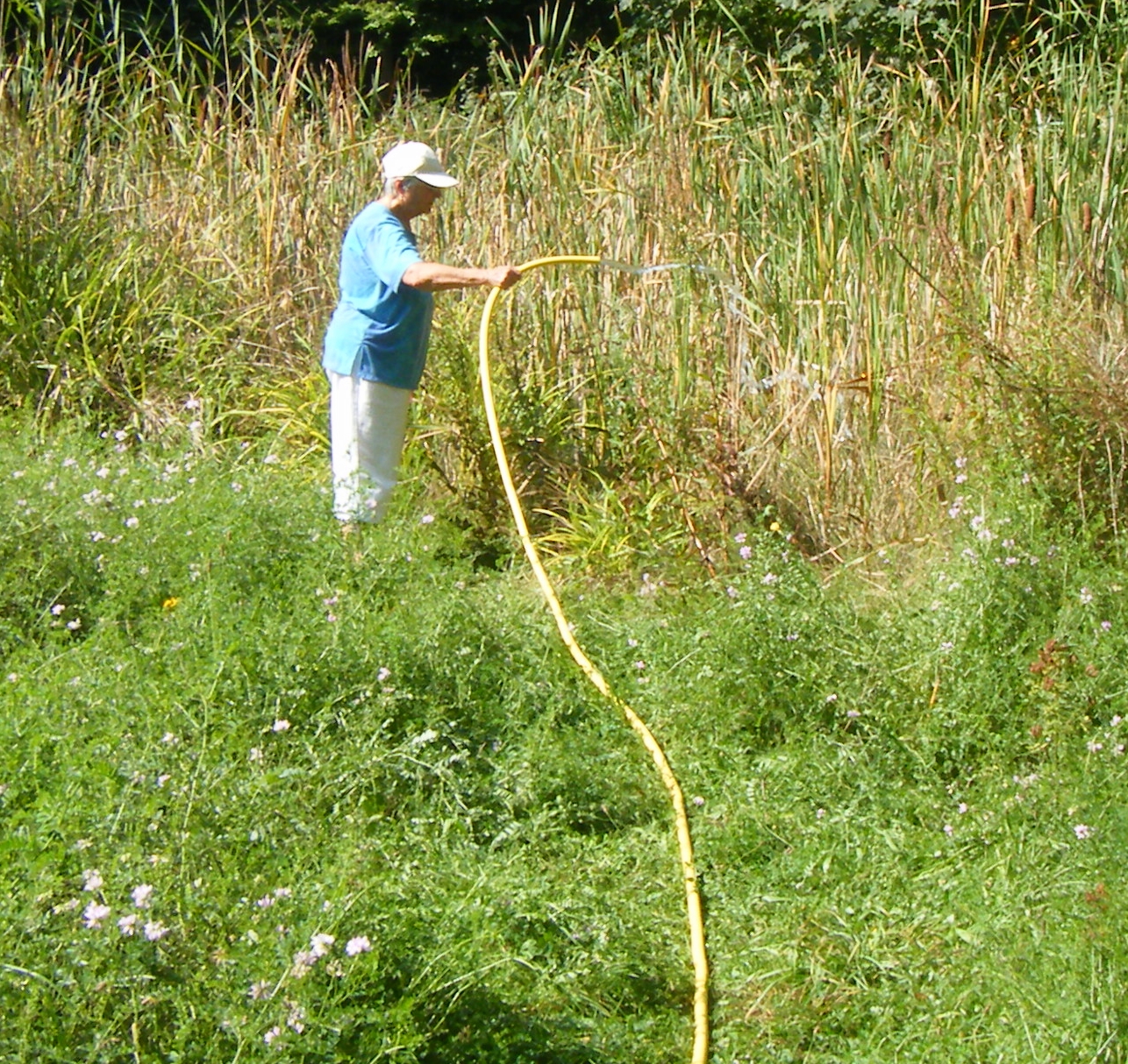 Um das Leben im Teich zu erhalten, wird er öfters aus einer naheliegenden Zapfstelle mit Wasser aufgefüllt.