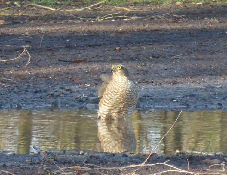 Nachdem die Veranstaltung bereits zu Ende war, konnten ein paar von uns noch sehr schön einen weiblicher Sperber beim Trinken und Baden in einer der Pfützen auf dem Parkplatz beobachten. Dies war dann wirklich ein gelungener Abschluss dieses schönen Morgens.