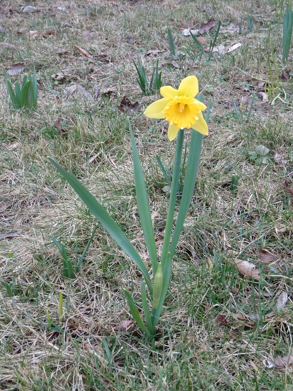 Besonders überrascht hat uns hierbei eine einzelne Narzisse. Bei ihren ganzen Nachbarn schauten gerade mal die Knospen aus der Erde und diese eine stand schon in voller Blüte.