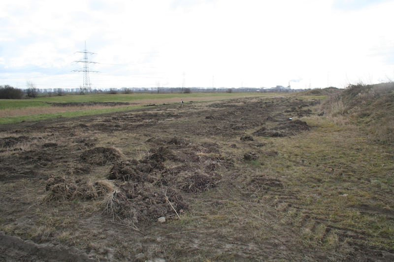 Jörn Weiß war heute Mittag vor Ort, um sich ein Bild von der Lage zu machen und hat hierbei die folgenden Fotos aufgenommen. Er hat das Gelände, welches sich letztes Jahr noch als idyllisches Biotop zeigte, mit einem Truppenübungsplatz nach einem Manöver verglichen.