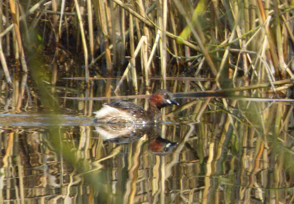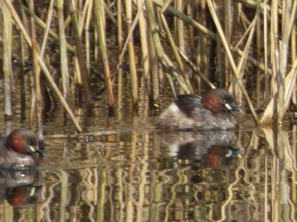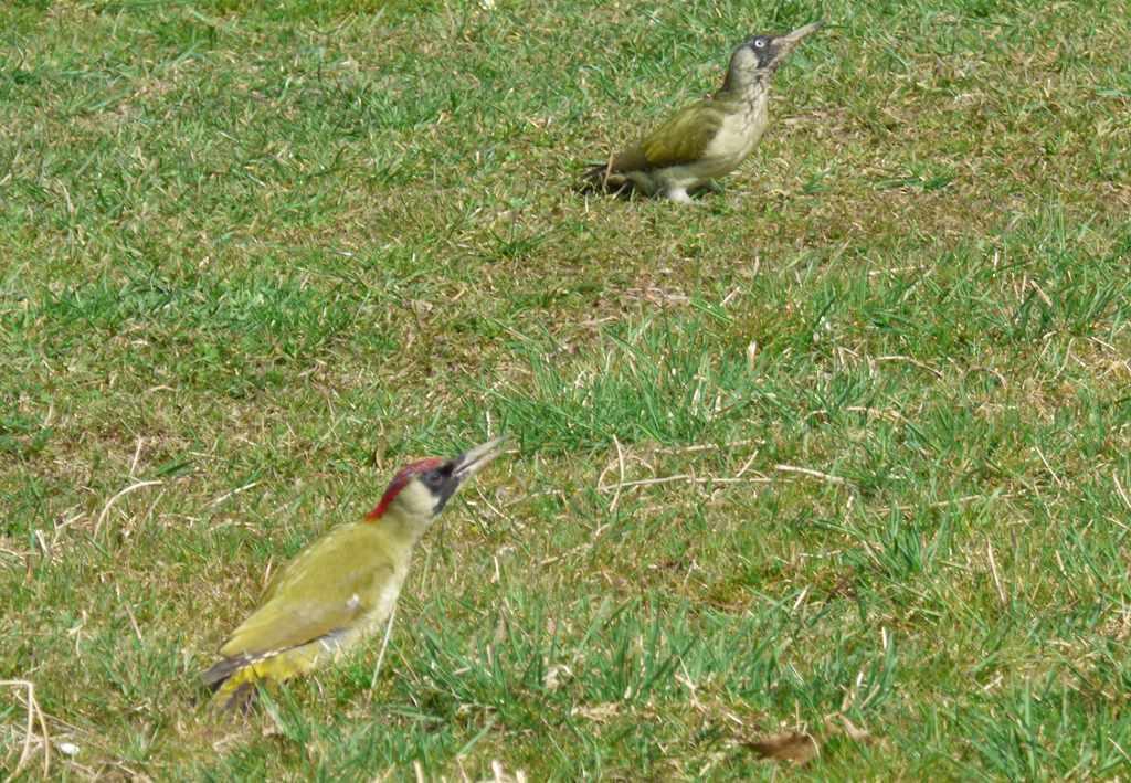 Am Mittwoch den 25.03.15 begebe ich mich auf einen Rundgang durch unseren „Kleinen Wald“. Viele Kohl- und Blaumeisen sowie einige Singdrosseln kann ich beobachten und auch ihren Gesängen lauschen. Im Scherrschen Weiher jagt eine einzelne Nilgans ein Stockentenpaar umher, bis es entnervt das kleine Gewässer fluchtartig verlässt. Ein Pärchen Zwergtaucher im Prachtkleid hingegen bleibt unbehelligt, schwimmt umher und lässt trillernde Rufe ertönen. Ich denke, dass wir in diesem Frühjahr ( vielleicht schon bei der Exkursion am 1. Mai ) Zwergtaucherküken zu sehen bekommen. Teich- und Blessralle werden von der aggressiven Nilgans ebenfalls geduldet. Als ich auf den Rückweg die Obstbaumwiese quere, entdecke ich noch zwei Grünspechtdamen, die eifrig nach Ameisen stochern. Bedrohlich wirken ihre großen, massiven Schnäbel und die schwarzen Gesichtsmasken. Was ich sonst noch an dem Gewässer sah, will ich erst im nächstem Bericht beschreiben. Nur soviel vorab, eigentlich kann es gar nicht sein, aber ich traue meinen Augen.