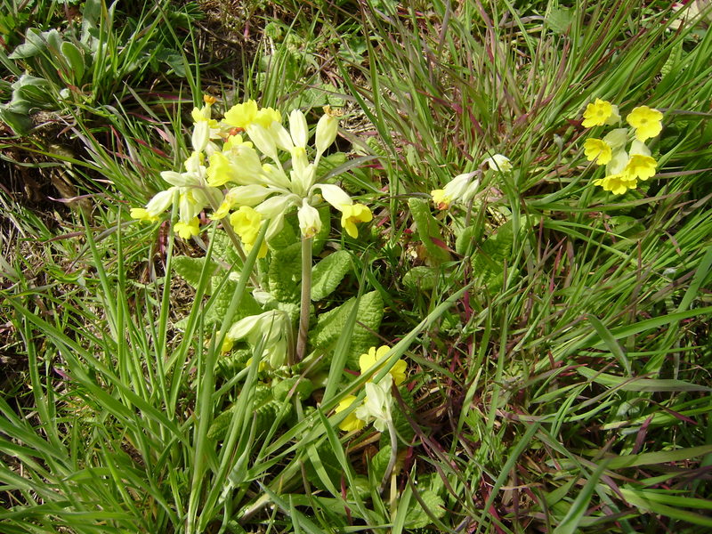 Die Schlüsselblumen blühen, die einzige Küchenschelle ist auch zu sehen, nur hat sie sich noch nicht geöffnet.