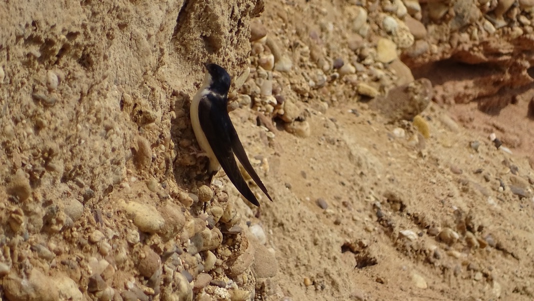 Ebenfalls sehr gut zu beobachten waren die Uferschwalben, die in der Steilwand Höhlen besetzten oder erst neu anlegten.