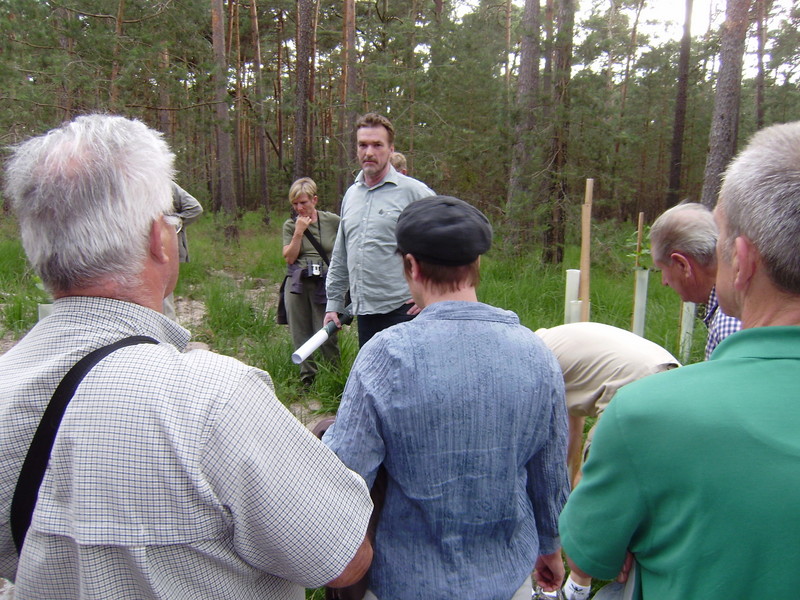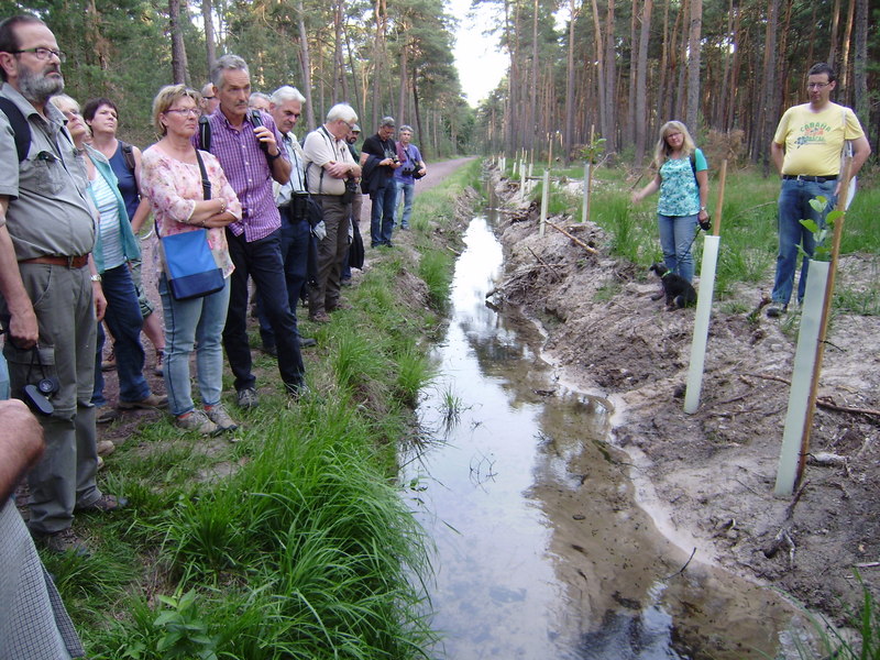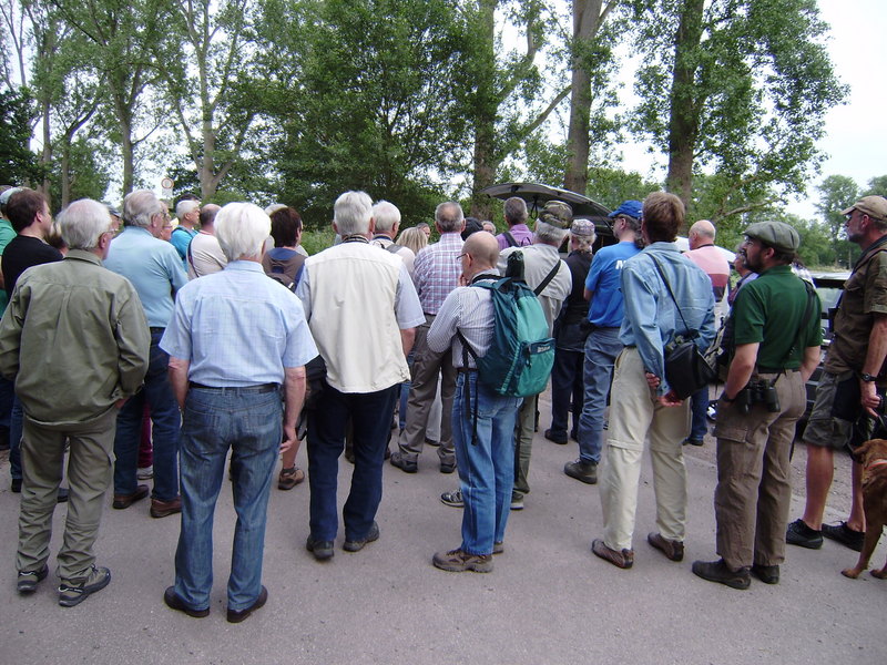 Das war ein gewaltiger Andrang gestern auf der Exkursion. Es waren bestimmt 50 Teilnehmer, wenn nicht noch mehr. Treffpunkt war die Fronmühle bei Hassloch.Zuerst führte uns Martin Grund vom NABU-Neustadt zu dem wieder wasserführenden „Bach“, ein fantastisches Projekt: ein alter verschollener Wasserlauf, der durch den trockenen Kiefernwald führt mit ganz viel Leben darin. Erstaunlich, was sich in der kurzen Zeit wieder alles angesiedelt hat, Kaulquappen von diversen Fröschen und Kröten, Molche usw. Ein grünes Band schlängelt sich durch den Wald.