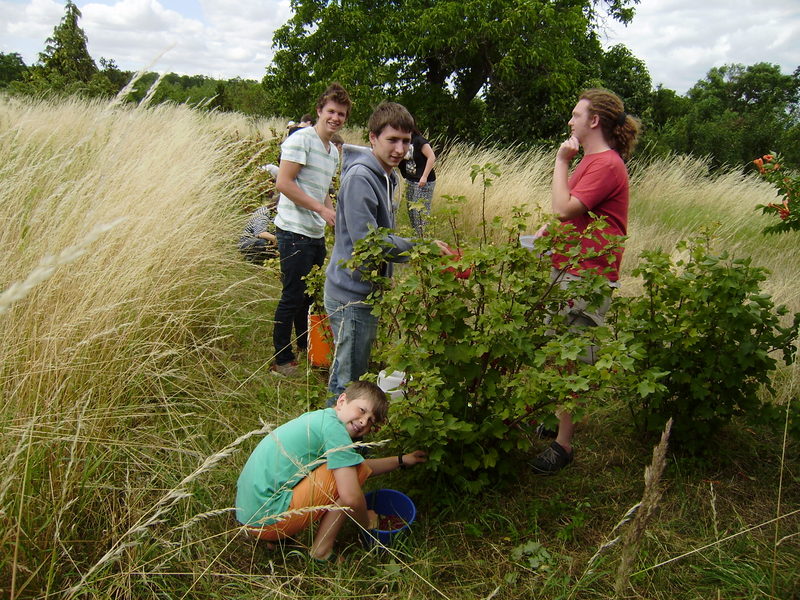 Unsere NAJU kam gut ausgerüstet mit Eimern angerückt, weniger gut gegen Zeckenattacken – aber ich hatte einen Spray dabei. Fleissig haben alle die Beeren gepflückt, schwarze wie rote – und nun viel Spaß beim Verwerten !!
