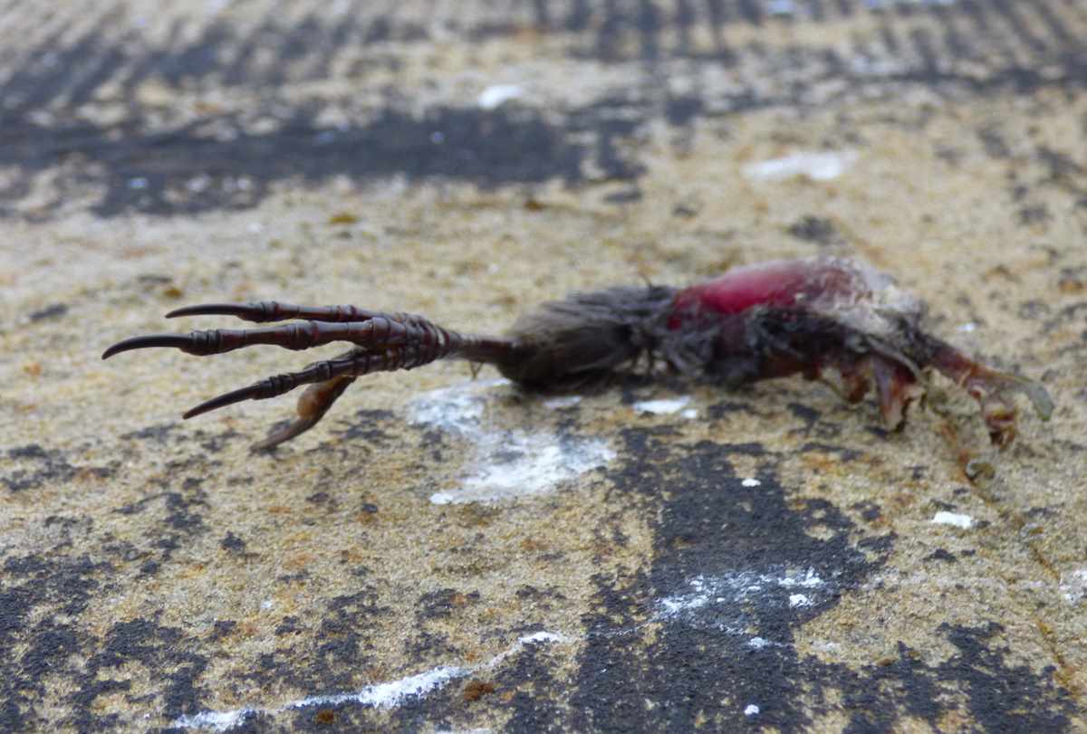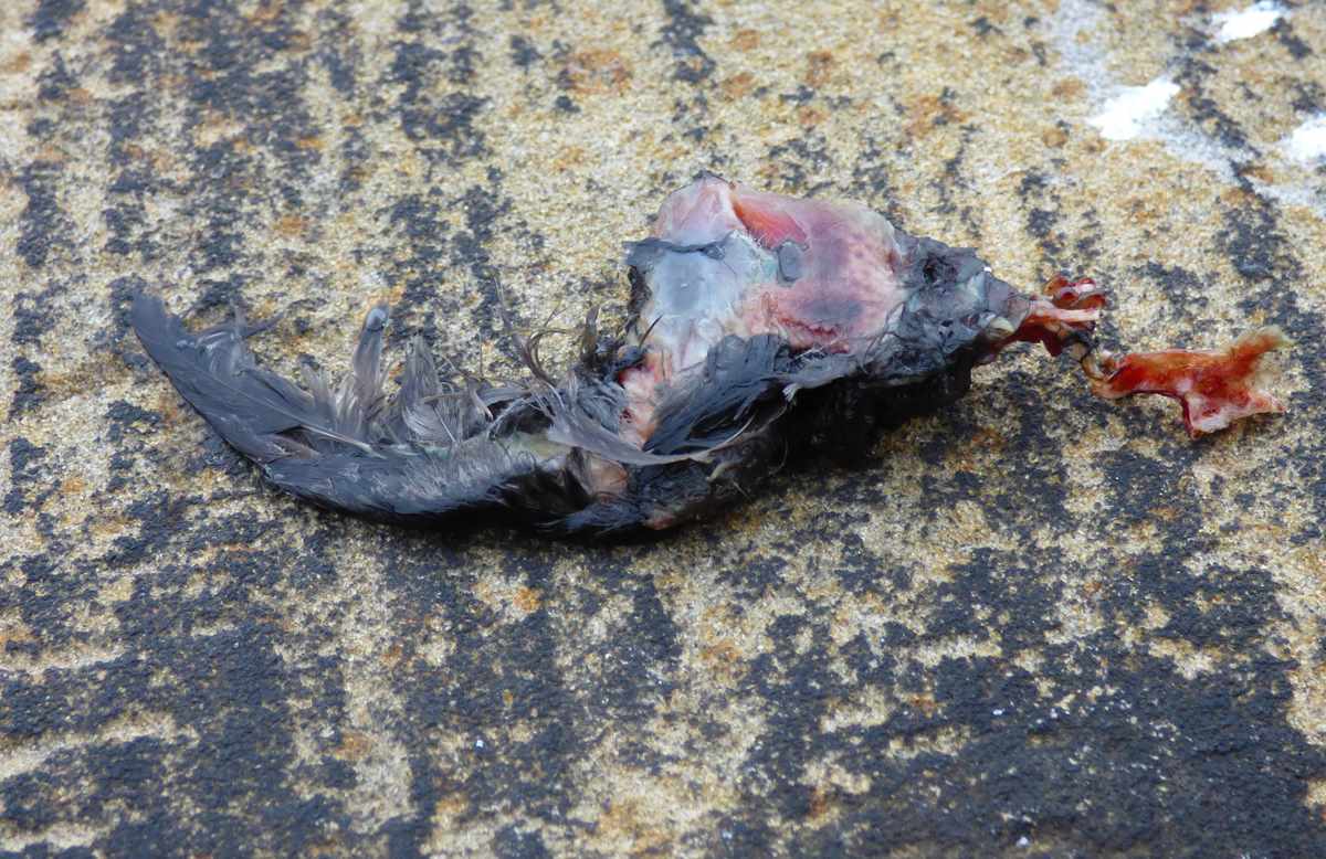 Zwölf-Apostel-Kirche, um den Brutkasten auf Schäden zu kontrollieren und zu reinigen. Nachdem seit März keine Wanderfalkensichtung gemeldet wurde, waren wir überrascht, Beutereste und Gewölle – wenn auch nur in sehr geringen Mengen – dieses Greifvogels vorzufinden. Noch mehr aber staunten wir, als ein Wanderfalkenweibchen den Turm mit schnellen Flügelschlägen umkreiste und sich auf dem obersten Steinsims niederließ.
