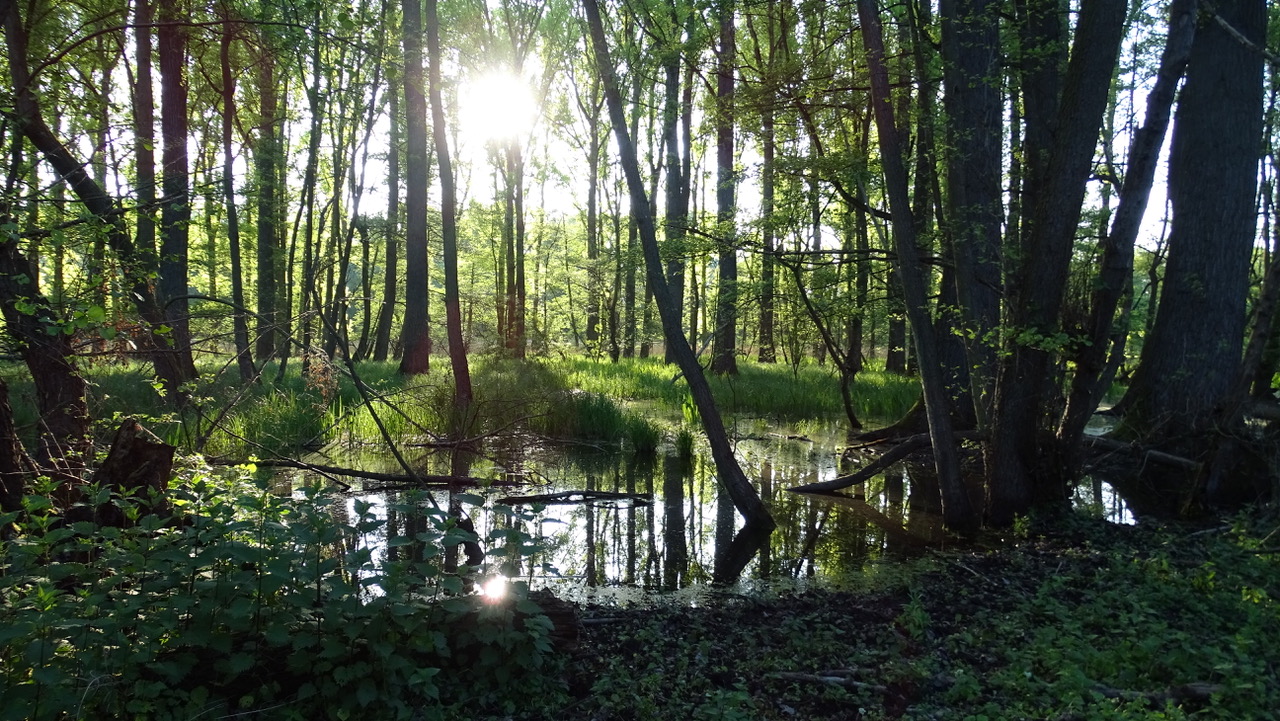 Am Freitag fand zum ersten Mal unsere Exkursion zu den „Geinsheimer Wasserwelten“ statt, die gemeinsam mit dem NABU Neustadt/Weinstraße durchgeführt wurde. Leider fanden sich in Frankenthal nur fünf Teilnehmer ein, die jedoch mit einem Kleinod der Naturlandschaft belohnt wurden, das in weitem Umkreis seinesgleichen sucht. Nach kurzer Fahrt kamen wir am Treffpunkt beim SV-Geinsheim an, wo bereits eine große Schar weiterer interessierter wartete, so dass unsere Expedition doch noch auf über 30 Teilnehmer anwuchs. Martin Grund führte uns dann in das Gebiet, das durch ein ausgeklügeltes Wassermangement wiedervernässt wurde, nachdem es Jahrzehntelang trocken gefallen war. Schon nach wenigen Metern fühlte man sich in einer völlig andern Welt angekommen. Vergleiche mit dem Spreewald, den Everglades oder dem Auenland kommen einem spontan in den Sinn. Besonders bizarr wird der Eindruck, wenn man sich an der Grenze zum Golfplatz befindet. der inmitten des Projektgebiets liegt. Auf der einen Seite hat man dann eine künstliche, von Menschenhand geschaffene Landschaft, auf der anderen Seite, wilde, sich selbst gestaltende Natur. Nachdem uns hier ein erster Einblick in das Projekt gegeben wurde begaben wir uns in einen anderen Teil des Gebiets, südlich der B39. Hier war dann bei einsetzender Dämmerung einiges zu sehen und zu hören, was das Herz des Naturfreundes höher schlagen lässt. Hier nur ein kleiner Ausschnitt: Storch, Rohrweihe, Zwergtaucher, Singdrossel, Ziegenmelker, Waldschnepfe, Fledermäuse, Grasfrosch, Springfrosch, Moorfrosch, Laubfrosch. Waren bei einsetzender Dämmerung nur vereinzelte Laubfrösche zu hören, so steigerte sich das Konzert mit zunehmender Dunkelheit, als hunderte Laubfrösche zu hören waren. Insgesamt eine äußerst beeindruckende Exkursion, die sicher fester Bestandteil in unserem Programm werden wird.