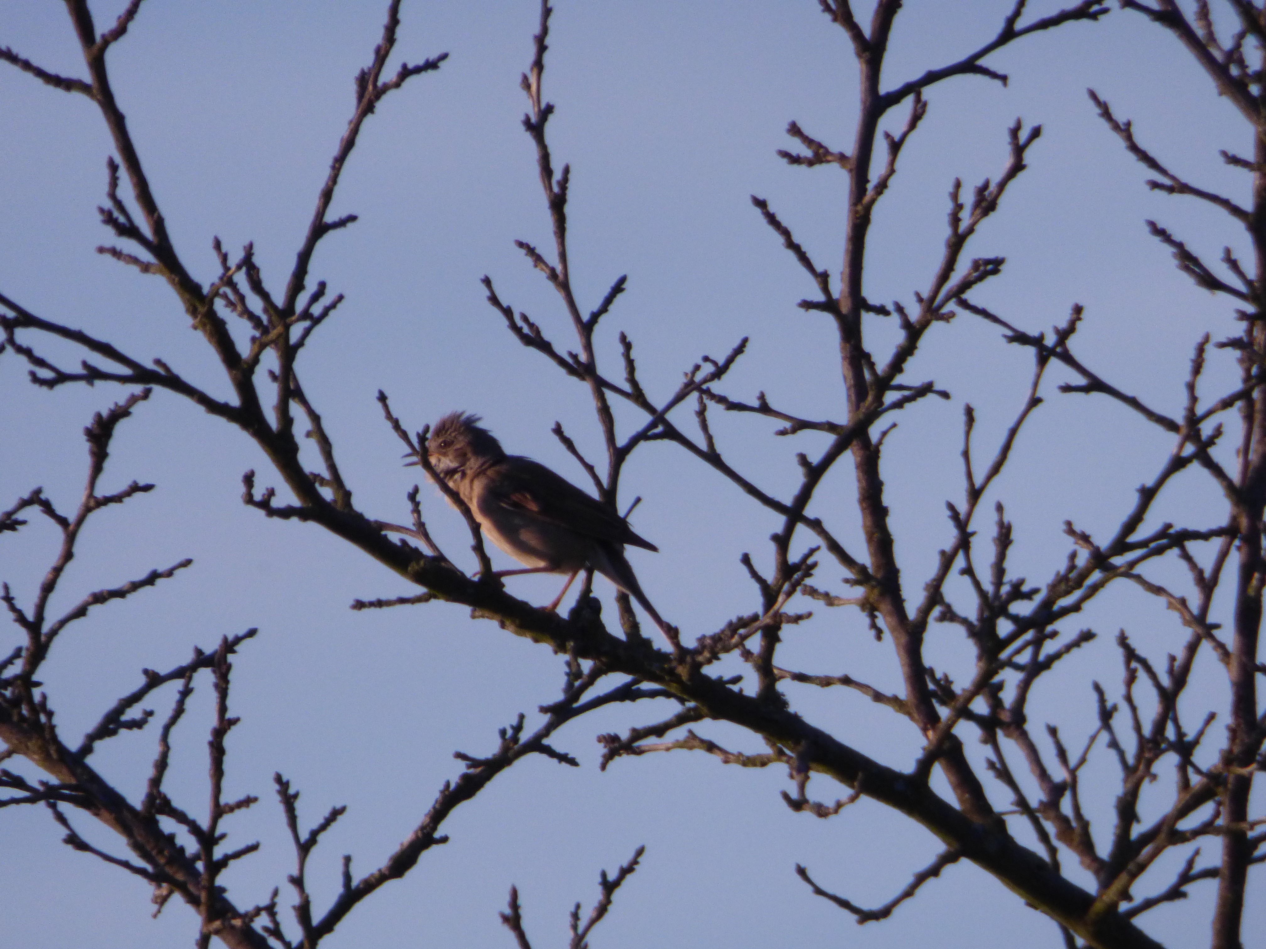 Spontan beschließe ich an diesem herrlichen Juniabend, unsere Pflaumenwiese zu besuchen. An der Südseite des Grundstückes angekommen, höre ich die hupp hupp hupp Rufe des Wiedehopfes. Obwohl von geringer Lautstärke, sind sie dennoch über weite Entfernung hörbar. Langsam kämpfe ich mich schrittweise auf dem mit 1,3 Meter hohen Gras zugewachsenen Weg zum nördlichem Ende der Pflaumenwiese,  dem vermuteten Standort des Wiedehopfes entgegen. Viele Stare, Blau – und Kohlmeisen sind eifrig bei der Insektensuche, um ihren Nachwuchs zu versorgen. Ein Amselmann singt sein Abendlied, und eine Nachtigall gibt noch einige Kostproben ihres Gesangsrepertoirs zum Besten. Mehrere Turteltauben gurren unermüdlich. Plötzlich sehe ich einen Kleinvogel fast senkrecht auffliegen. Ich meine den Gesang der Dorngrasmücke  zu vernehmen. Nach nur kurzem Höhenflug lässt sich der Sänger auf einem Baumzweig nieder, und ich kann mit einem Blick durch mein Fernglas endgültig die Dorngrasmücke bestimmen. In meiner Jugend war dieser Vogel noch sehr häufig, doch mittlerweile ist er ziemlich selten zu beobachten. Um so mehr freue ich mich, dass ich den lebhaften Sänger so ausgiebig betrachten kann. Fast habe ich inzwischen den Wiedehopf vergessen, jedoch bringt der sich mit seinen  hupp hupp Rufen wieder in Erinnerung. Auf dem Weg, der unser Grundstück nördlich begrenzt, schreite ich ostwärts, weil von dort die Wiedehopfrufe ertönen, und entdecke hoch im Gehölz den sitzenden Rufer. Die tief stehende Abendsonne verleiht seinem rötlichen Gefieder eine besondere Intensität. Lange Zeit kann ich den Vogel betrachten und trete, da das wunderbare Sonnenlicht nachlässt, beglückt über die Erlebnisse den Heimweg an. Dabei sehe ich nochmal  einen Wiedehopf, der dicht über die Reben eines Wingerts fliegt.