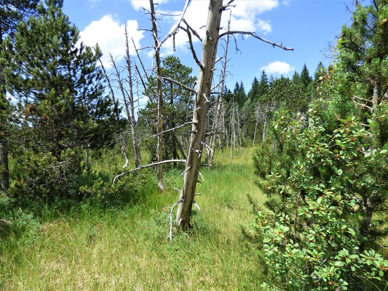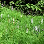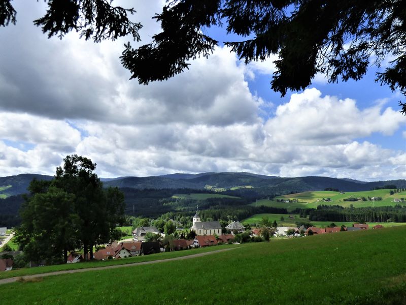 wenn das Gute liegt so nah? Fast jedem ist dieser Sinnspruch geläufig. wir beherzigen ihn und steigen in einen Reisebus, der uns in wenigen Stunden in den Hochschwarzwald bringt. Ausgeruht und entspannt betrachten wir unser Reiseziel, das auf einem Hochplateau in 1000 Meter Höhe gelegene Dorf Breitnau. Einige alte malerische Bauernhäuser und ein altes ehrwürdiges Pfarrhaus mit reichem Blumenschmuck sind der Stolz der Gemeinde. Weit kann man über die Berge und Täler des Hochschwarzwaldes, bis hin zum 1493 Meter hohen Feldberggipfel, blicken. Über diese herrliche Landschaft kreist ein Rotmilan. dessen Flugkünste wir in den nächsten zwei Wochen noch öfter bewundern. Am nächsten Vormittag starten wir zur ersten Wanderung und schon nach 300 Metern kommen wir zu einer kleinen Orchideenwiese, auf der, trotz fortgeschrittener Jahreszeit, zahlreiche weißblühende Exemplare  Geflecktes Knabenkraut in voller Blütenpracht stehen. Wenig weiter blüht die Weiße Waldhyazinthe am Wegesrand in der Gemeinschaft vieler weiterer Wildblumen, die von unserer Gesellschaft leider auch heute noch als Unkräuter verunglimpft und bekämpft werden. Bei weiteren Wanderungen fiel uns auf, dass besonders die Wiesenflockenblume sich nicht über mangelnden Schmetterlingsbesuch beklagen kann. Schwalbenschwanz, verschiedene Mohren,- Dickkopf,- Scheckenfalter und viele andere Arten nehmen deren dargebotenen Nektar gerne an. Bei einer Wanderung am Nordhang des Feldbergs kamen wir zu einem kleinen Weiden- und Espenbestand. Hier beobachteten wir einen Schillerfalter. Dieser wunderschöne Schmetterling, dessen Flügeloberseiten je nach Lichteinfall blau oder braun schillern, hat eine völlig andere Vorliebe, er delektiert sich am Kot anderer Tiere. Leicht kann man den Schillerfalter mit überreifem Käse anlocken. Weshalb er sich aber gerade meinen Wanderschuh als Rastplatz aussuchte, vermochte ich nicht zu ergründen. An der Baumgrenze angekommen, fällt uns sofort der Gelbe Enzian, der hier in großen Mengen wächst, durch seinen hohen Wuchs auf. Beim näheren Betrachten eines Enziangewächses grinst mich, auf der unteren Blattrosette sitzend, ein verliebtes Gebirgsschreckenpärchen an. Bei einer Wanderung durch ein Hochmoor sehen wir zwei Hochmoorgelblinge. Es gelingt mir aber nicht, diesen stark gefährdeten Falter zu fotografieren. Die Bachnelkenwurz, die ebenfalls hier im Hochmoor gedeiht, ist in Deutschland zwar auch in ihrem Bestand gefährdet, entzieht sich aber nicht der fotografischen Dokumentation. Keine Angst vor Fressfeinden braucht das kleine Sechspunkt- Widderchen zu haben. Seine auffällige Färbung signalisiert, Achtung ich bin giftig, wenn du mich verspeist, wird es dir schlecht ergehen.  Im Hotelpark benutzt ein Trauerschnäpper eine rustikale Sitzbank als Ansitz