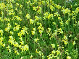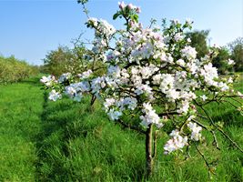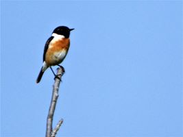 Samstag der 21.April , ein herrlicher Aprilmorgen mit ungetrübtem Sonnenschein lockt mich zu unsere Pflaumenwiese. Zwar ist die Pflaumenblüte schon vorbei, inzwischen sind nun Kirsch- und Apfelbäume voll erblüht. Die weißen Kirschblüten bilden einen wundervollen Kontrast zum wolkenlosen blauen Himmel. Am liebsten würde ich mich unter den Kirschbaum legen und ein wenig träumen, aber der in der Sonne glitzernde Morgentau, der auf den Grashalmen glänzt, würde mich sicher durchnässen. Auf unserer Ruhebank sitze ich trockener und kann zudem ein Pärchen Feldsperlinge beobachten, das sich für den Nistkasten Nr.4 interessiert. Merkwürdig ruhig ist es, ich vermisse das Gesumme der Bienen und Hummeln. Das kann nicht nur an meiner nachlassenden Hörfähigkeit liegen, denn auch meine Augen sehen nur wenige dieser nützlichen Blütenbestäuber. Soll sich hier der allseits festgestellte Insektenverlust bemerkbar machen? Erstmals höre ich in diesem Jahr das gurrende turr-turr der Turteltaube. Der Wiedehopf lässt sei hu-hup ertönen, ein über mir kreisender Mäusebussard miaut wie eine Hauskatze. Langsam gehe ich nordwärts, überall und unübersehbar blüht die Echte Schlüsselblume, die auf unserer Wiese größere Bestände bildet. Aus dem mit Brombeeren überwuchertem Nachbargrundstück ragen einige dürre Baumzweige hervor, auf einem dieser Zweige sitzt singend ein Schwarzkehlchenmann. Auf dem Grundstück des BUND entdecke ich im Geäst eines Baumes einen Bluthänfling. Wegen Gegenlicht gelingt mir leider nur ein unscharfes Foto. Auf der Trockenmauer entspinnt sich zwischen zwei Mauereidechsen eine Frühlingsromanze, die ich fotografisch dokumentieren kann.