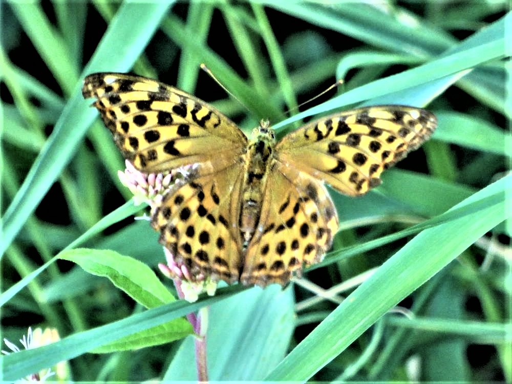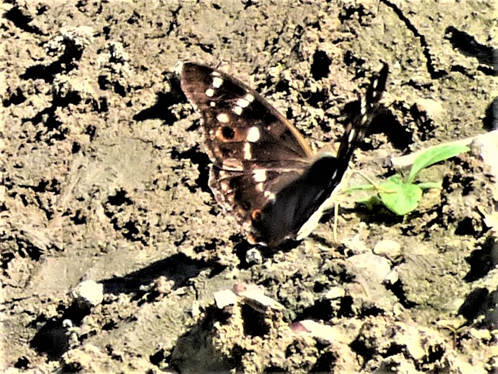 Oft kann man die Männchen des Schillerfalters an Aas oder Kot bei ihrer für uns Menschen unappetitlich erscheinenden Nahrungsaufnahme antreffen. Wir finden auch noch ein ockerfarbenes Weibchen. Die Weibchen saugen gerne an überreifen Früchten oder nehmen den Honigtau der Blattläuse auf.