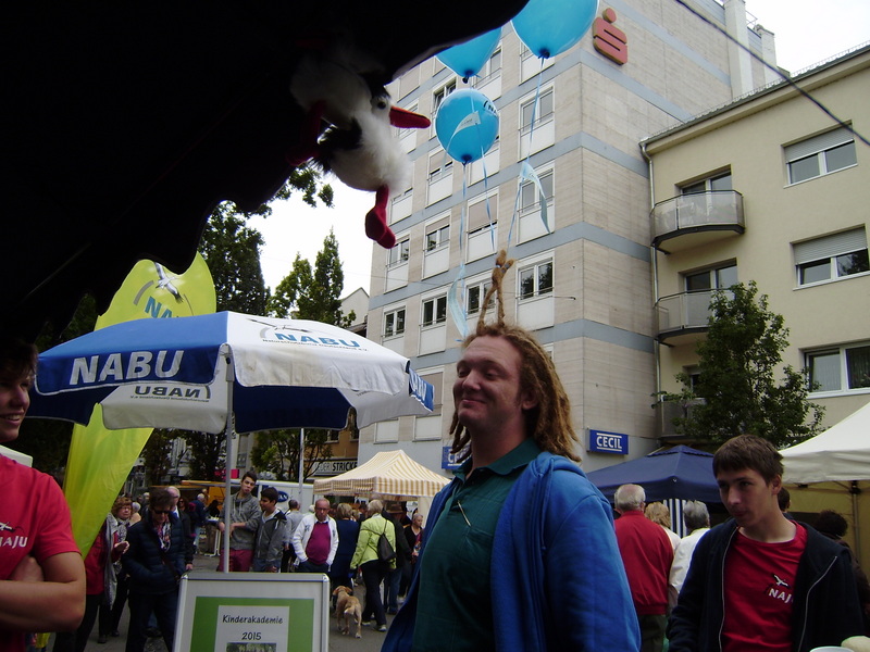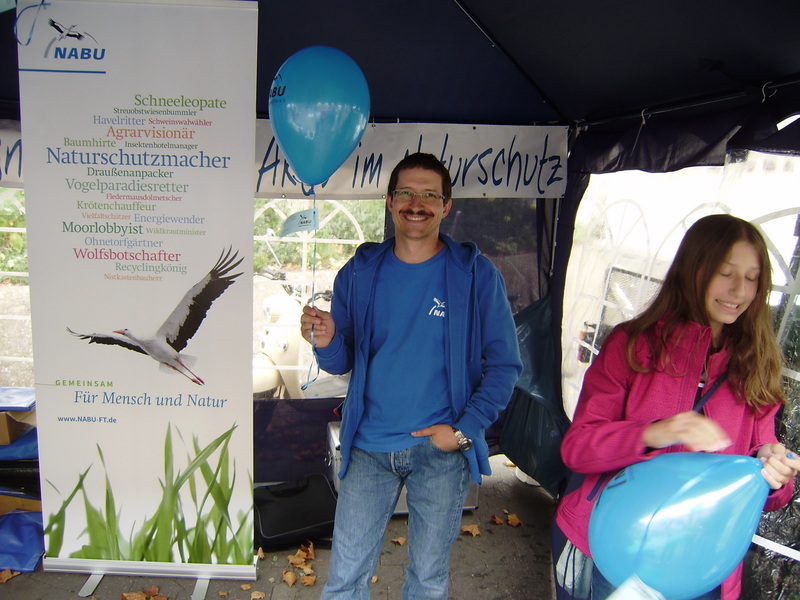 Heute fand sich die NAJU ein und verteilte Luftballons und Fabian machte sich einen Spaß daraus sie an seinen Haaren anzubinden.