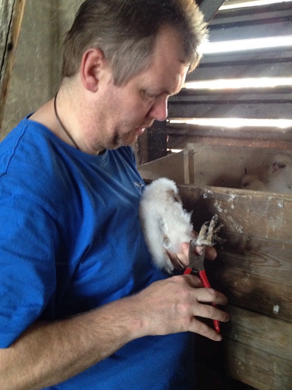 Heute konnte ich die Schleiereulen im Dirmsteiner Kirchturm beringen. Allen fünf Jungen geht es sehr gut und sind gut genährt . Der Dirmsteiner Pfarrer Albrecht ist so begeistert von seinen fliegenden Kirchenbewohnern, das er drum gebeten hat, das ich im kommenden Herbst noch einen zweiten Nistkasten im Kirchturm installieren soll.