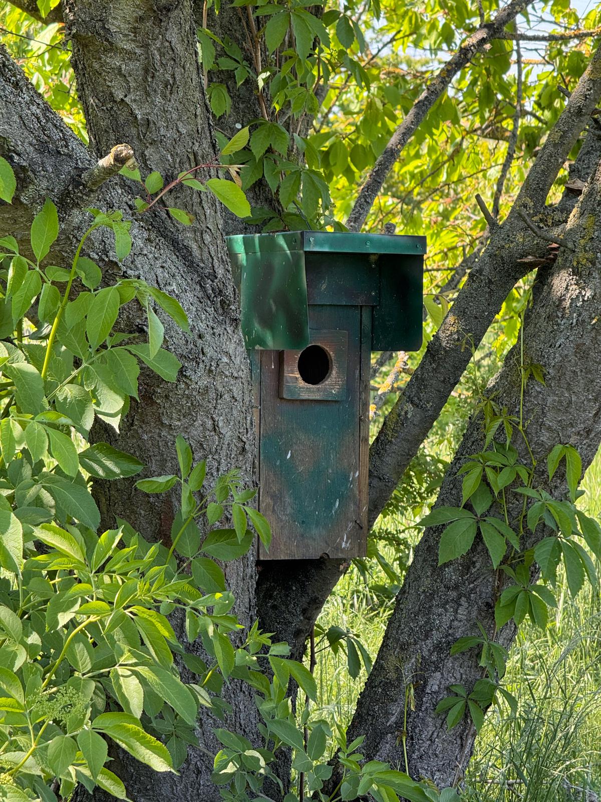 Viele Gruppen haben die Erfahrung gemacht, dass eine zweite Röhre in der Nähe oder direkt am Baum der ersten Röhre gut geeignet ist, um dem Männchen einen Ruheplatz anzubieten. In diesem Jahr haben wir dies im Studernheimer Raum auch einmal umgesetzt.