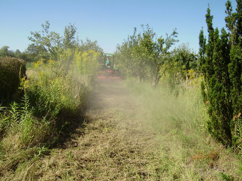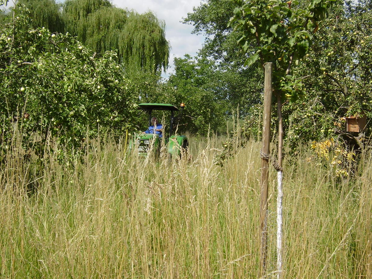 Gestern hat Dr. Bruder dankenswerterweise unsere Wildwuchs-Pflaumenwiese gemäht. Es war höchste Zeit und nur schwer zu bewältigen.