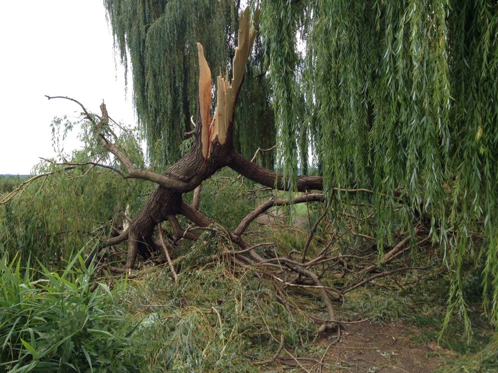 Jörn war heute auf unseren Grundstücken in Freinsheim und was er dort vorgefunden hat, ist nicht schön. Der Sturm hat erhebliche Schäden angerichtet, wie man auf den Bildern von Jörn deutlich sehen kann. Die Weide steht glücklicherweise nicht auf unserem Grundstück, sondern bei unserem Nachbarn. Da steht der nächste Arbeitseinsatz bevor und nicht wie geplant die Ernte, sondern erst einmal das aufräumen.