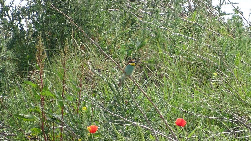 An einem perfekten Tag mit viel Sonne führte Jörn 16 interessierte und auch sachkundige Vogelbegeisterte zu den Bienenfressern bei Gerolsheim. Neben den Bienenfressern brüten unzählige Uferschwalben in den Wänden der Sandgrube. Wir konnten uns von der Beobachtung nur schwer losreißen.