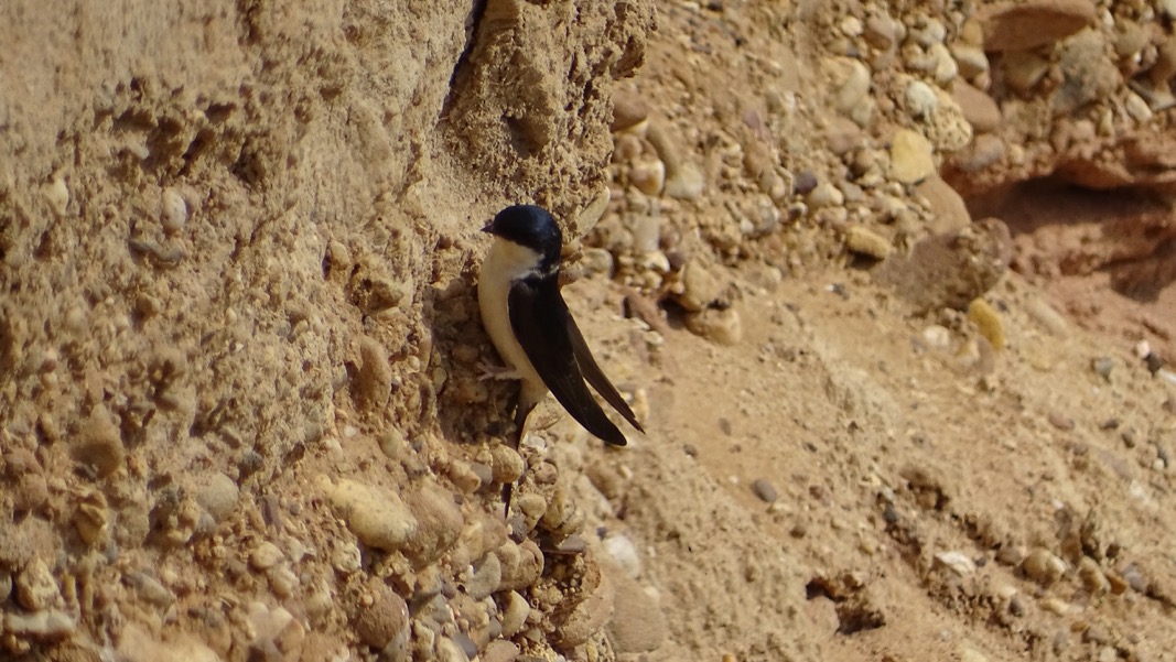So konnte ich beobachten, wie die Bienenfresser von den Staren angegriffen und scheinbar erfolgreich von vorhandenen Brutröhren vertrieben wurden. Schön war auch zu sehen, wie die Bienenfresser anfingen, neue Brutröhren zu „zimmern“.